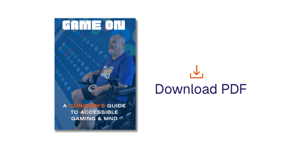 Game On – A Clinicians' Guide to Accessible Gaming and MND: Evidence-informed tips for health professionals to support clients in gaming safely, meaningfully and independently.